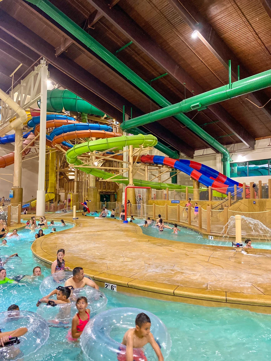 Check in is at 4pm however you can start enjoying the water park as early as 1pm. We arrived at 12:00pm and the lobby was practically empty and made things much easier and quicker, so I definitely suggest arriving before 1pm. What do you do with your luggage you ask? They will store it for you at the Bell desk if you valet park for no additional charge or if you self park, leave it in your car while you start exploring the hotel and waterpark. What we have done is wore our swimsuits under our clothes and brought a beach bag with things we would need before being able to get to our luggage/room.