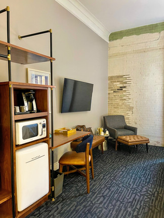 We stayed in a beautiful and specious Double Queen bedroom. Their upholstered headboards, retro telephone, and their washed brick accent wall gave it a special magical touch I absolutely loved. Most importantly, happy to report the whole room was spotless and everything was in tip top working conditions. Service and cleanliness go hand in hand in importance when choosing a room and Hotel Trundle did amazing in both departments. The beds were comfortable and allowed us to get the rest we needed after days full of exploring and fun. Down below I will list some of the in room comforts they offer: