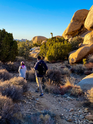 This trail was our first stop since it was only 20 minutes from the entrance. It is a 1 mile loop trail with stunning views and lots of the beautiful large boulders this park is knows for. We arrived at around 5pm which allowed us to admire the color changes in the sky as the sun was starting to set...it was stunning, dare I saw life changing. There is something so magical about this park I can't put my finger on, but once you are there you will know exactly what I'm talking about. This hike was easy and took us about an hour with plenty of stops for pictures, admiring our surroundings, and reading. As you walk the trail there are sign giving you bits of information about the park and some of the plants and trees around the area. Definitely kid friendly and highly recommended. If you plan to visit later in the evening like we did, make sure you have a lantern or flashlight. We did end up doing part of the hike once the sun set and it was very dark but we were prepared with a flashlight. It was a very interesting and heart racing experience. Would we do it again? Absolutely! The trail is very well marked so even in the dark we knew where we were going.