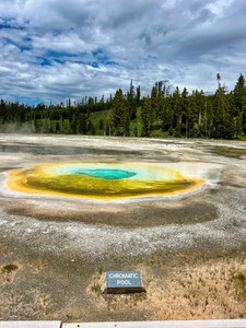 It a vibrant colored pool that is a must see. One of the prettiest ones at the Upper Geyser Basin Trail. It's a quick stop along the trail that leads to other must see spots listed down below.